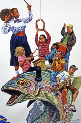 Terry Furchgott creates richly colorful figurative paintings, murals, and installations that explore the dynamics of human relationships and communities.