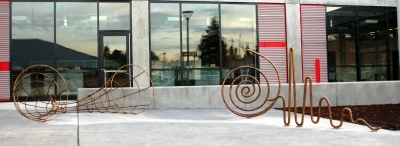 Wave Length is part of artist Fernanda D'Agostino's six-part installation in the Whitehorse Hall plaza at Everett Community College. Patterns and theories from physics inspired her playful forms. She notes, "My project uses these forms, drawn from contemporary physics, to create a series of metaphorical sculptures for the lower courtyard. In each instance, dynamic forms are captured in the act of transformation, evoking both the evolving understanding of contemporary physicists and the power of the creative act." In this way, the installation brings together the arts and sciences. Both of these disciplines are taught in Whitehorse Hall.