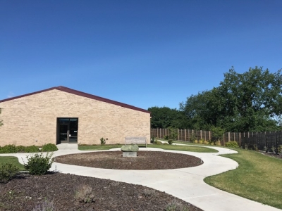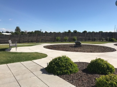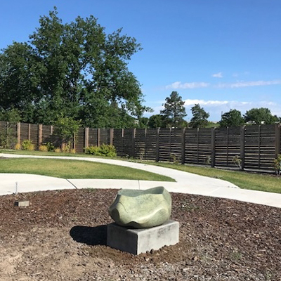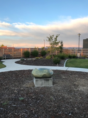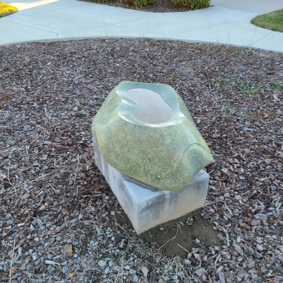 Artist Tom Small's organic sculpture is located in the center of the Memory Care Garden at the Walla Walla Veterans Home. The carved stone sculpture is paired with a place for thought and peacefulness. In his own words, Small notes "How does light move through stone? I try to push past stone’s identity as gravity-bound. Can flight or movement be suggested?"