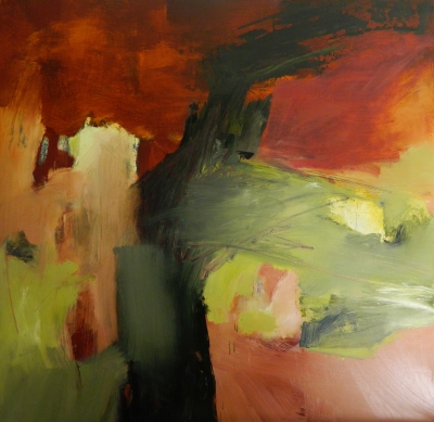 Sequoia is an abstract painting by artist Becky Knold. She notes that, “Perhaps it is a particular quality of the light on a foggy, Pacific Northwest afternoon, or the water’s calm reflections on the surface of a pond, or the shimmer of the wetlands at dusk. Or, just as often, it could be the striking and unique character of rocks, mountains, or trees that becomes my focus. . . This is what I want to paint—not the ‘realistic image’, but one that portrays something of the inner spirit and mystery of what I see.”