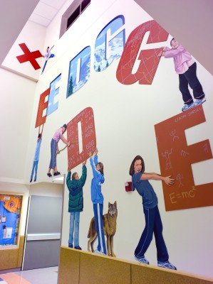 Artist Linda Davidson’s series of six small paintings aim to place you (the viewer) in a relationship with the world in her paintings, like a character in their story. The group of paintings work together to create a story or help you imagine one for yourself, but each painting also tells a story on its own. Davidson also wants you to see the painted surface and the fact that these are paintings. This artwork is part of a curated collection by Kathleen Garrett at Harriet Rowley Elementary School, in Mount Vernon, Northwestern Washington. The local art selection committee wanted these artworks to reflect the local landscape and the spirit of adventure and possibility of Harriet Rowley, the school’s namesake. “Mother Rowley” (1880-1965) was a nurse from Ohio who opened the first hospital in Mount Vernon in 1920. She is remembered for her indomitable spirit and her desire to help others.