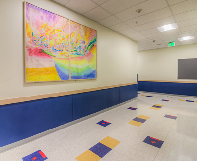 Nikita Ares’ paintings aim to show the relationship between movement and energy. Her intention is “to depict the bond between the flow of energy and the chaos of movement towards order, luring the viewer to expand their own interpretation, perception, and awareness.” The vibrant energy of the Philippines and her own state of being inspire her lively colors and festive marks. This artwork is part of a curated collection by Philippe Hyojung Kim in 2021 at Simcoe Elementary, in Wapato, Central Washington. The local art selection committee stressed the following interests: artworks that represent Wapato’s diverse families and its rural and agricultural communities; the connection to the Yakama Nation; and artworks that focus on balance and are reflective of young minds.
