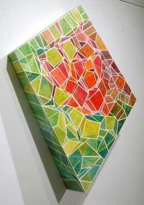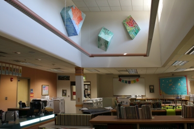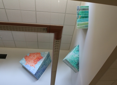 In her “Open Monad” series, artist Cynthia Camlin wanted to break down natural forms and explore how crystals form or plants grow little by little, building on their cellular structures. She built a 4-foot plywood cube which she then cut into six pieces using irregular angles. She made each of these pieces into multi-sided paintings that are also abstract geometric forms and sculptural landscapes. This artwork is part of a curated collection by Dawna Holloway in May 2021 at Pioneer Elementary, in Shelton, Western Washington. Holloway’s focus is the mystery of this world we find ourselves in together. Art can show us the world around us, as well as new ways of looking. Art is a tool and a language to express our vision of the world. These art examples remind us that art and its expression is always available to all of us.