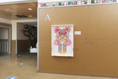 This artwork is part of a curated collection by Asia Tail for North Hill Elementary, in Des Moines, Western Washington, in July 2021. The local art selection committee wanted art that reflects their diversity, their values as a sustainable green school, and the 5th grade experience of growth, togetherness, and transitions. The artworks show us that everything is connected. Asia Tail notes “Just as people shape the land, the land shapes us. How we treat our plant and animal relatives matters now and for all the generations that come next.”