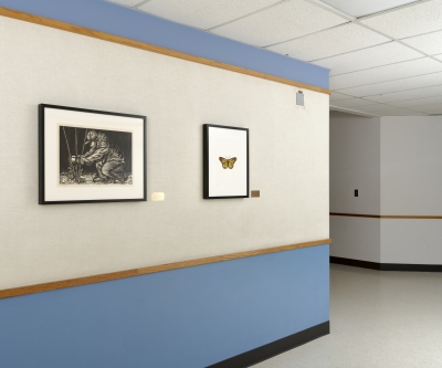 Christie Tirado's woodblock print 'Training II' focuses on a young man who is absorbed in his work. Tirado uses her art to highlight and honor the Mexican migrant farmworkers whose hard work often goes under-recognized and under-appreciated. This artwork is part of a curated collection by Erin Dengerink in October 2021 at Foothills Elementary, in Buckley, Western Washington. The local art selection committee wanted artworks that are beautiful, intriguing, and spark imagination.