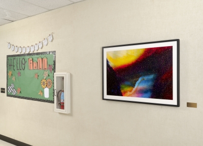 Rachel Wolf creates her camera-less images, such as 'Alchemy I', by directly exposing photographic materials, paper, and film, to light and chemicals. These are the basic elements of pre-digital photography. Her images invite us to consider what a photograph is or can be. This artwork is part of a curated collection by Erin Dengerink in October 2021 at Foothills Elementary, in Buckley, Western Washington. The local art selection committee wanted artworks that are beautiful, intriguing, and spark imagination.