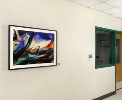 Rachel Wolf creates her camera-less images, such as 'Alchemy II', by directly exposing photographic materials, paper, and film, to light and chemicals. These are the basic elements of pre-digital photography. Her images invite us to consider what a photograph is or can be. This artwork is part of a curated collection by Erin Dengerink in October 2021 at Foothills Elementary, in Buckley, Western Washington. The local art selection committee wanted artworks that are beautiful, intriguing, and spark imagination.