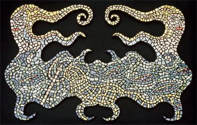Colors of a Punctured Donut by Timea Tihanyi is a ceramic vessel that grew out of a 2019 collaboration with mathematician Sara Billey. The vessel is made using the process of chip-firing, a mathematical modeling technique. Chip-firing games consist of a theoretical game board where sand can pile up in each cell. When the cell is full, the sand topples over to the neighboring cells. From an art perspective, simple sets of rules are being applied in a repetitive fashion, which leads to an unexpected complexity of patterns. While the pattern was generated using the technical process of coding, the ceramic material softens the result. The game board’s opposite edges are stitched together top to bottom and left to right, forming a donut. It shows a specific distribution of the sand grains on the game board after the one-millionth iteration of the chip-firing algorithm. This artwork is part of a curated collection by Renee Adams in March 2023 for a new Science & Technology Building at Walla Walla Community College, in Southeastern Washington. The collection brings together artists who combine art and science. They use scientific approaches such as observation and experimentation, precise measurements and calculations. A desire to learn more about our world and share that knowledge is at the heart of both scientific and creative pursuits.