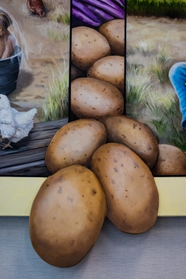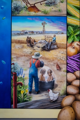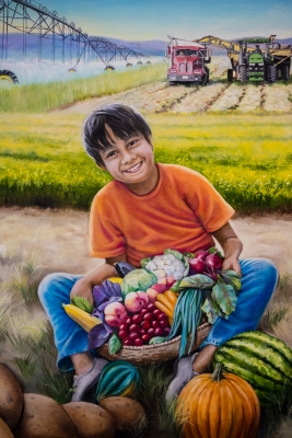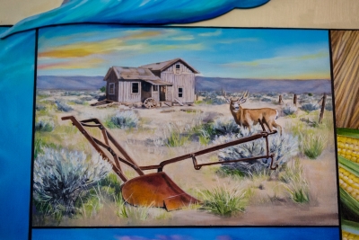 Water Gifts is a series of five paintings by artist Susan Aurand. The artworks reflect the importance of water in the history and life of Quincy, in Central Washington. By visually bringing nature into the school, it is an invitation to students to appreciate how much life exists around them. It is also a challenge from the artist to learn more. Aurand notes: “Water is a good metaphor for learning. Education is waters for the mind, allowing new ideas and perspectives to grow and children to flourish.” Aurand did extensive research on the geology of the area, the town of Quincy, and the Columbia Basin Irrigation Project which began in the 1940s.