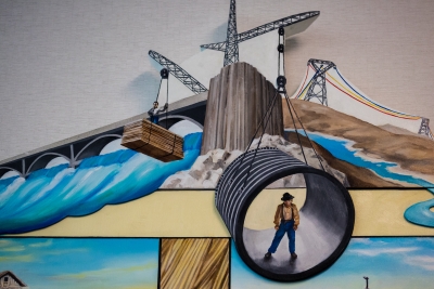 Growing (part D) focuses on the area’s difficult history of farming. In 1942, the Grand Coulee Dam brought irrigation and water for all.
