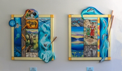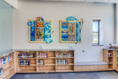 Water Gifts is a series of five paintings by artist Susan Aurand. The artworks reflect the importance of water in the history and life of Quincy, in Central Washington. By visually bringing nature into the school, it is an invitation to students to appreciate how much life exists around them. It is also a challenge from the artist to learn more. Aurand notes: “Water is a good metaphor for learning. Education is waters for the mind, allowing new ideas and perspectives to grow and children to flourish.” Aurand did extensive research on the geology of the area, the town of Quincy, and the Columbia Basin Irrigation Project which began in the 1940s.