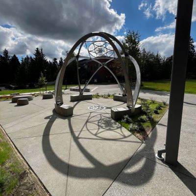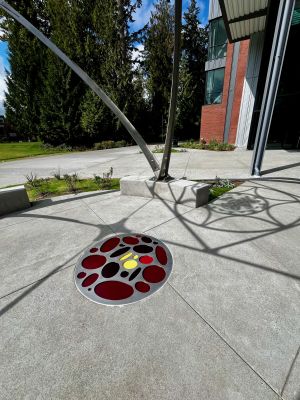 Celebrated artist Preston Singletary (Tlingit and Filipino-American) grew up in the Seattle area listening to stories told by his great-grandparents, who were Tlingit (Native Alaskan). In 1984, Singletary took part in his first workshop at Pilchuck Glass School in Stanwood, Northwestern Washington. In the late 1980s, he began including traditional Tlingit themes into his work. In his own words, “It was only when I began to experiment with using designs from my Tlingit cultural heritage that my work began to take on a new purpose and direction.” Singletary has returned to Pilchuck as both a teacher and student many times, and he has blown glass around the world. In 2018, he was honored with a Washington State Governor's Arts and Heritage Award. In 2024, he was inducted into the Asian Hall of Fame (his grandmother is Filipina).David Franklin creates public art in a variety of styles and materials, including metal, glass, and wood. He seeks to create an instant connection between the viewer and his art. Franklin is a non-Native artist, and some of his artworks are influenced by Native American Northwest Coast styles. He grew up in Colorado and started his art career with graffiti. In the early 1990s, he moved to the Pacific Northwest and began a ten-year apprenticeship with non-Native artist and carver Duane Pasco, who has made the study of Indigenous artistic traditions of the Northwest Coast his life’s work. Franklin learned graphic and sculptural skills, and he gained experience with large-scale art fabrication and installation. He lives and works in Indianola, on the Kitsap Peninsula, on southern Puget Sound, Western Washington.
