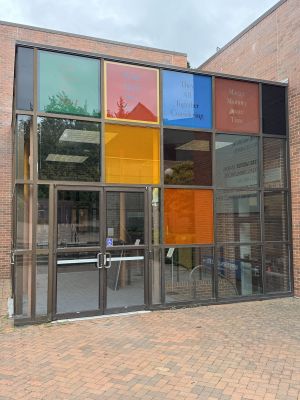 Space Poem #15 (To the Remembered Earth), Part III: Matter Memory Space Time is one of three Space Poems created by Renée Green for Western Washington University. It is part of Green's larger series consisting of colorful banners that use text from book titles, poetry, names of friends who have died, cultural people who influenced her life, as well as phrases written by her to explore language. Green describes this series as being, “open-ended... I’m interested in the possibilities between forms, ideas, and language. I’m always in between, working with combinations of many of these things.”