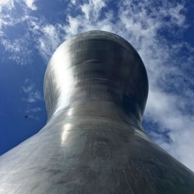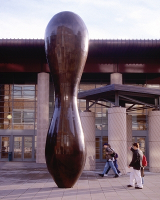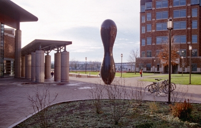 Celebrated artist Martin Puryear created the cast bronze sculpture Everything that Rises for the Physics and Astronomy Plaza at the University of Washington in Seattle. It was fabricated of a rich, copper-colored bronze by Kentucky's Vendome, Inc., a company known more for their fabrication of distillery tanks than artwork. The piece is radially symmetrical, 23 feet tall, and weighs 8,000 pounds. Puryear chose the size and material to relate to the surrounding buildings.