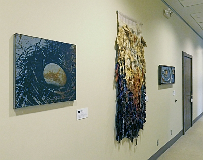 Artist Susan Agnus created this piece using a photographic screen printing process. In this technique, she converts the different levels of gray in a black and white image into a pattern of dots on a screen. She then printed the image onto a metal surface. She notes that this piece explores the “transitory and fragile aspects of our world.” Her artworks are interested in themes of shelter, control, and what she calls “The delicate yet tenacious quality of nature external to us and yet within us.”