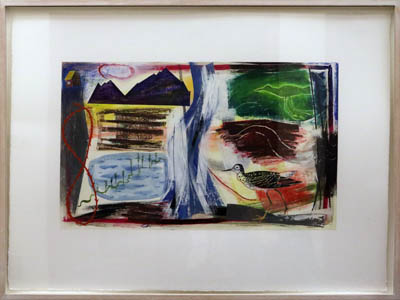 A Revision of Habitat is part of artist Joanne Hammer's series of layered works on paper that feature gestural and spontaneous imagery. This piece features multiple bird figures and landscape forms that reference a pond near the artist's studio. This piece investigates our relationship to nature and our responsibility to protect fragile habitats.