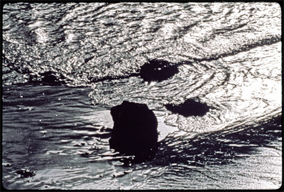 Radiated Light was captured by artist Mary Randlett at Long Beach, Washington. She noted how the composition highlights patterns and textures, created by moving ocean water filling in a small cove with the tide.