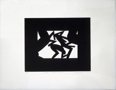 Northwest artist Michael Spafford creates paintings and prints that translate mythological figures and narratives into abstracted visual terms. Lapiths & Centaurs #7 uses positive and negative space to portray the Greek legend of the battle between Lapith men and the mythic beasts.