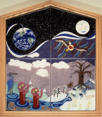 Glass artist Richard La Londe creates elaborate glass murals that are pictorial narratives full of symbolism and color. He is also known for his glass handkerchief vessels.La Londe grew up in Vancouver, Southwestern Washington. In 1972, he graduated from the University of Washington in Seattle with a degree in Geology. He immediately started making art and worked odd jobs. La Londe is a pioneer in the fused glass movement. He was one of the initial artists in the 1980s to work and experiment with Bullseye Glass Company's colored glass for fusing. He has taught glass fusing at the Pilchuck Glass School in Stanwood, Northwestern Washington, as well as around the United States and Canada. Today, La Londe lives on Whidbey Island in Northern Puget Sound, Western Washington. His work has been exhibited and commissioned internationally.