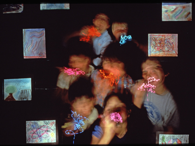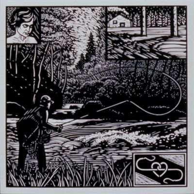 Duncan's River is a print created by artist Dennis Cunningham. He created the composition by cutting the negative space out of a linoleum block. He then layered ink onto the areas of linoleum that remained and transferred the image to paper. It is part of a body of prints created by the artist to celebrate fishing, and fish as a symbol of nature. In these prints, he often layers inserted images to support the artwork's story and concept. He states, "My use of multiple images is an attempt to visually describe the character of real experience. Like memories, the images are layered and juxtaposed. Together they give a more complete impression of experience than a single image can provide."