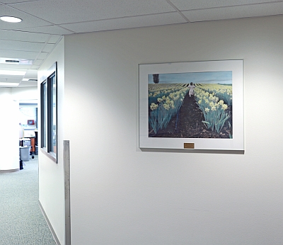 'Girl in a Daffodil Field' is a hand-painted photograph by artist Patricia Ridenour. The image was captured in the spring in the Skagit Valley, when the tulip and daffodil fields bloom. She notes, "Over the many years I have tried to encapsulate the feeling of awe I experience with in the Skagit. It has taken me years to finally get the potent power to come through in a photograph. My wish is that this experience gets translated to the viewer."