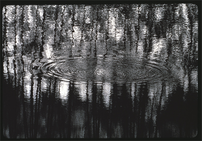 Water Landscape by Mary Randlett captures the rippling reflection of alder trees in a pond at the Bloedel Reserve on Bainbridge Island, on Puget Sound, Western Washington. Randlett noted "I always look for circles in water as they lend another dimension to moving form."