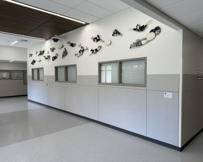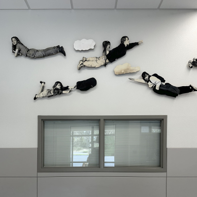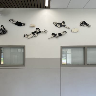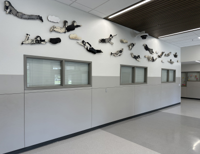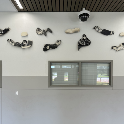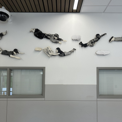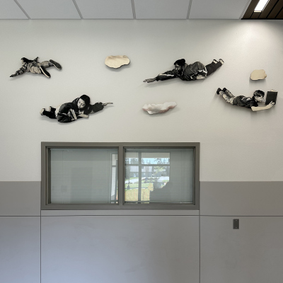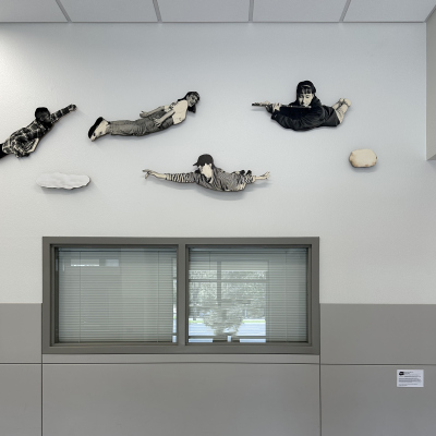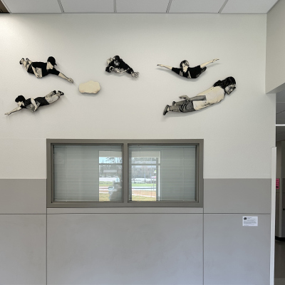 The Sky is the Limit is a photographic installation created by artist David Joyce for Komachin Middle School. Thirty cutout figures comprise the installation. The figures are portraits of Komachin students, posed like birds flying. Joyce notes in his proposal, "The overall mood of the piece would be one of joy, excitement, and freedom. The subjects in the photographs could be selected from the current student body and would reflect the social, cultural, and racial diversity of the student population."