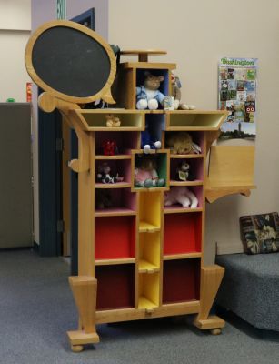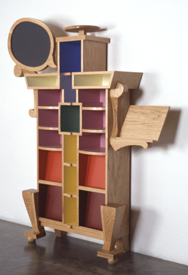 The Subject (Body of Knowledge) is part of a group of limited edition bookcases designed by artist Claudia Fitch. Conceived to highlight and display books, student projects, or other materials used in a school environment, the form suggests a cartoon-like figure. This piece is part of the Limited Edition Artist’s Designs Project (LEAD), commissioned between 1997 and 1999 by the Washington State Arts Commission in partnership with the Department of Corrections. For this project, six notable Washington artists designed artworks to be produced in multiples specifically for the public school environment. The artworks were fabricated at Department of Corrections’ facilities by inmates and staff.