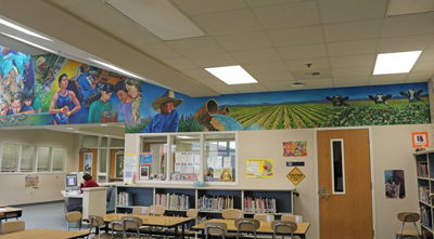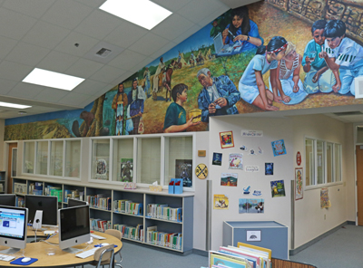 Learning to Fly is an inspiring mural created by artist Daniel Galvez. It features diverse people engaged in different forms of scientific, social, and cultural exploration. The artwork celebrates Pioneer Elementary's vibrant community of teachers and learners in Central Washington.