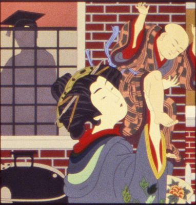 Shimomura was a professor of art at the University of Kansas, Lawrence for 35 years until 2004. He was honored with a Kansas Governor’s Arts Award in 2008. His artworks are in the collections of the Metropolitan Museum of Art (NYC), Smithsonian Museum of American Art (Washington D.C.), the National Portrait Gallery (Washington D.C.), and more. His personal papers are being collected by the Smithsonian Institution.