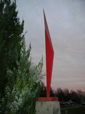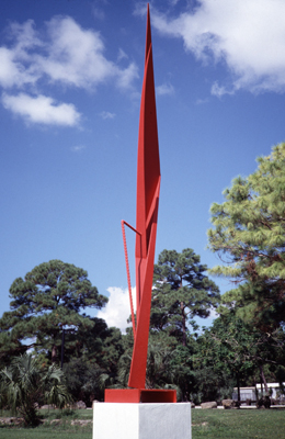 L'OJA 7 is part of artist Rafael Consuegra's body of abstract sculptures inspired by natural forms. He notes that the title references the Spanish word "oja" meaning "leaf."