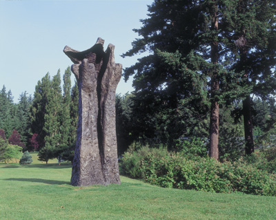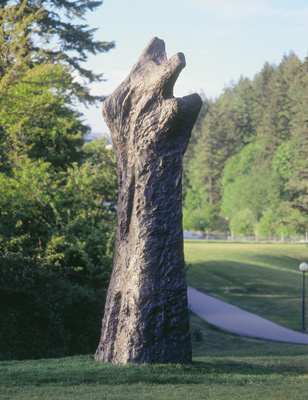 Manus is part of sculptor Magdalena Abakanowicz's 'Hand-Like Trees' series which explores the connections between humans and nature. This 15-foot-high bronze sculpture combines the characteristics of human hands and wrists with the textural surfaces and forms of tree trunks. The sculpture's location is also important: Abakanowicz chose this particular spot on Western Washington University’s campus to connect with both the nearby forest and the activities of students.