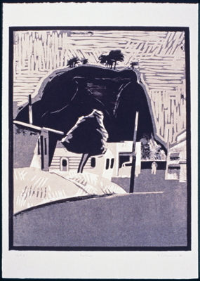 Northwest artist Lockwood Dennis (1937-2012) was known for his body of colorful woodcut prints. His art often depicted industrial landmarks and landscapes that have a tension between man-made and natural elements. Over his forty-five-year career, Dennis drew inspiration from varied traditions such as German Expressionist prints, vintage cast-metal toys, Japanese woodblock prints, comic art, and WPA era design from the late 1930s.