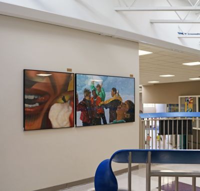 ‘Experience the World Through Your Senses’ is a series of 18 hand-painted photographs by artist Connie Ritchie. The series celebrates how our five senses (sight, smell, sound, taste, and touch) unify us all and connect our experiences to our memories, imagination, sense of place, and community. 'Apple' captures the satisfaction to be found in the first bite of a crisp apple. It is installed next to 'Snow' as two visual representations of taste.
