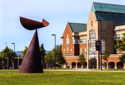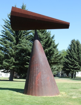 Artist Gary Bates refers to his steel sculpture, titled Cascade Cradle as a "wind seismograph." Located at Central Washington University, a half-cone shaped element balances on the point of an upright cone. It is structured so that the top element spins as the surrounding air fluctuates. This kinetic movement changes the sculpture from something static into an instrument that responds to its environment. He states, "I hope it becomes the wristwatch, the calendar and the weatherman of Central Washington University, making the subtle and illusive forces of nature not more predictable but more concrete. I see it as a tool, an awareness sharpener, a sort of tap on the window of our consciousness."