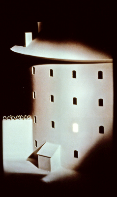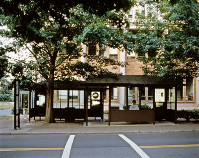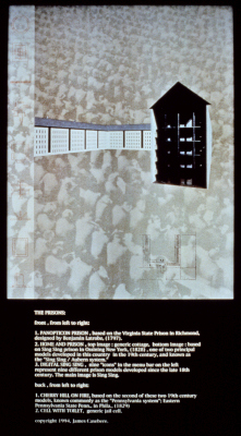 Prisons by artist James Casebere is a series of six images for bus stop lightboxes. They are part of his body of work based on the history of prison design since the late 1700s. He notes, "The work addresses the formation of new types of power and subjectivity concurrent with industrialization and modernization in the 19th century. It asks us to examine behavioral norms and modes of subjectivity, thus created, as well as the institutions that enforce them." Casabere's images were temporarily installed in six lightboxes at the bus stop outside of the UW School of Art. This artwork was part of a group of rotating installations on the University of Washington campus. The artists were selected in a competitive process to create images for existing lightboxes at bus stops outside of the UW's School of Art and Meany Hall. The images were reproduced as large-scale transparencies to fit the lightboxes. The bus stops featured the artworks for several months.