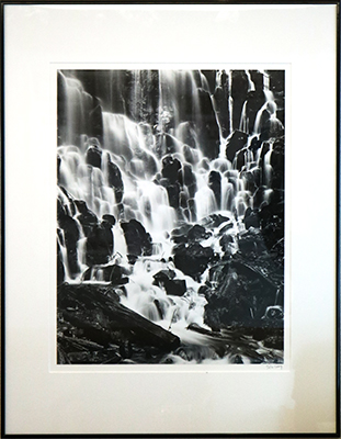 Ramona Falls was taken by photographer Stu Levy near Mount Hood in Oregon. This piece is part of the artist's body of work that captures the light and movement of flowing water. He created the image using a long exposure and techniques to capture rich detail. Levy notes that the composition of this image "establishes a sense of abstraction and allows the viewer's imagination to create narrative illusions within the image."