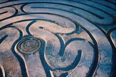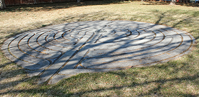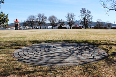 Artist Chuck Greening created Regal Maze as a walking labyrinth for Regal Elementary School. Students and faculty can walk the winding path. The path changes directions as it curves toward the center. Many different cultures and religions use this kind of walking path for meditation and reflection.