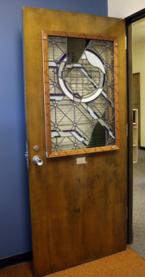 Glass artist Jack Archibald uses light to animate the colors and abstract shapes in his stained glass artworks. In his own words, "As a stained glass artist, I work with light. Glass is uniquely interactive with light, its transitions, its intensities, its colors. Throughout the day, a window constantly undergoes transformation. The changing light animates the glass."
