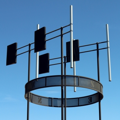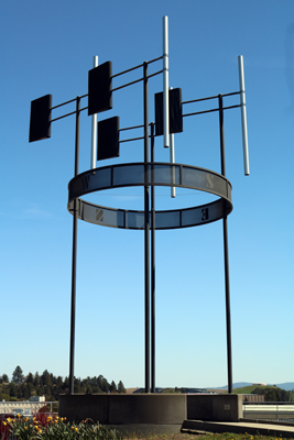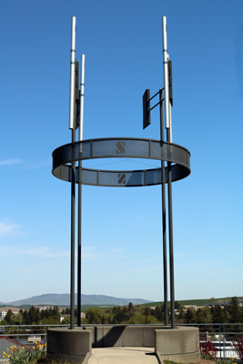 Persona is a kinetic sound sculpture by artist Douglas Hollis that "sings" when wind passes through four spinning weather vanes. Richard H. Miller, WSU's Director of the Office of Student Media, described the sculpture's variations of sound in a 2009 essay, noting "sometimes it's a person blowing into a bottle, or the call of a whale. Sometimes, a man plays a saw. The vanes move. A ghost moans... Perhaps the sound is the persona, spun into life from metal and air."