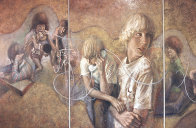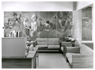 Artist Lee Bogle created the richly detailed mural Age of Discovery. Made up of five panels, it features portraits of teenagers based on real students from Kirkland Junior High. It is one of the first projects commissioned by the Art in Public Places Program.