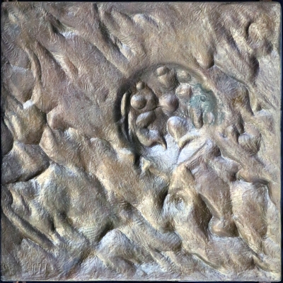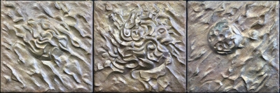 Three Solar Forms is a three-panel bronze relief sculpture created by artist Philip McCracken. The richly textured surface of each panel resembles a topographic map. The rough surfaces surround a central circular form, suggesting elements of light and heat radiating from the sun.