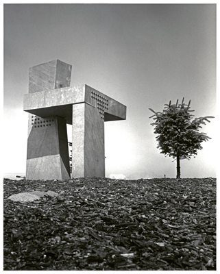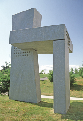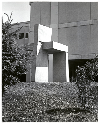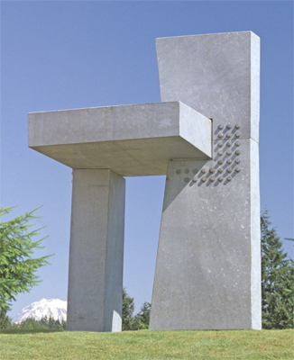 Northwest artist Lee Kelly created this large-scale steel sculpture for the Pierce College campus. The geometric relationships of this elegant structure reference architectural and elemental forms. This artwork is a compelling early example of the artist's body of monumental public sculptures.
