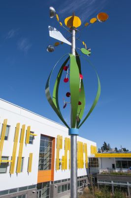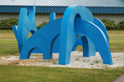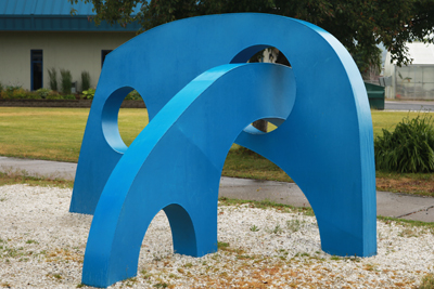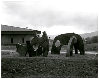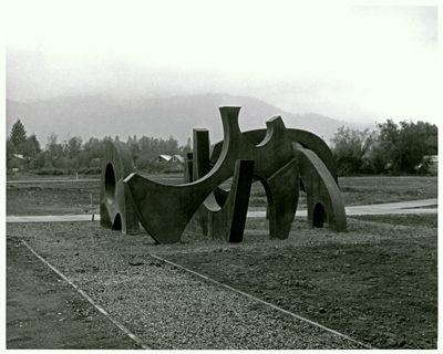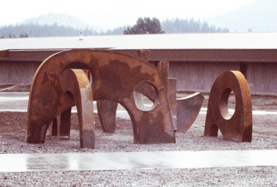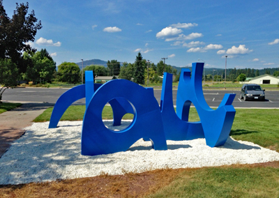 Mountain Spirits by PNW artist Philip Levine is comprised of five abstract forms that interact with one another. As the title suggests, Levine's forms are inspired by the mountains framing the surrounding Eastern Washington landscape.