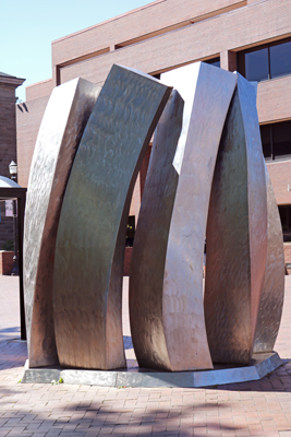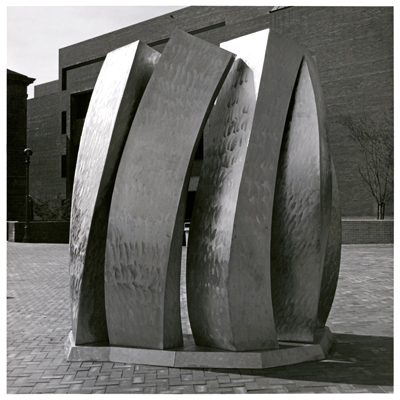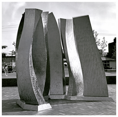 Ali Baudoin's Wind Cradle is inspired by the strong winds that blow off Elliott Bay and up Pine Street past Seattle Central College. Baudoin created this artwork in the mid 1970s while he was a graduate student in sculpture at the University of Washington in Seattle.