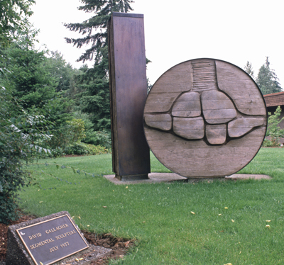 Olympia, Washington-based artist and professor David Gallagher (1937-1981) created abstract sculptures in wood. He taught at The Evergreen State College, in Olympia, Western Washington, from 1978 until his death in 1981. He previously also taught at the University of Denver in Colorado and at the University of Washington in Seattle.