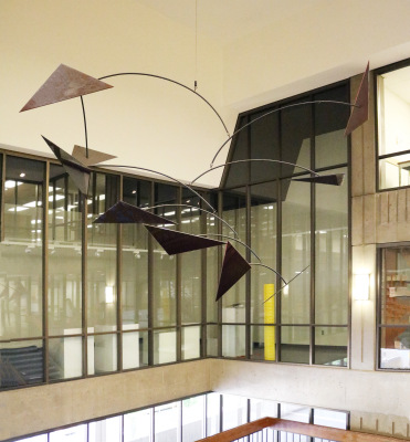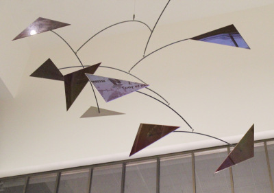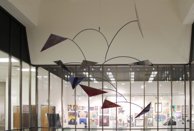 Mobile Sculpture is a suspended installation by artist Parks Anderson. Comprised of curved elements and triangular forms, this piece explores balance and movement.