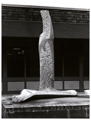Wizards is part of artist Brian Goldbloom's body of stone sculpture composed to highlight variations in textured surfaces, organic forms, and spatial relationships. The title hints that the vertical and horizontal elements of the piece could be interpreted as magical figures.