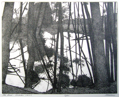 Late artist Art Hansen (1929-2017) drew his inspiration from the ponds, forests, and farmland of rural Vashon Island in South Puget Sound, Western Washington. He was born on Vashon, and it was his home for over fifty years at the end of his life.Hansen earned a Bachelor's degree from the University of Washington in Seattle. In 1952, he had a solo exhibition of his work at Seattle Art Museum. He traveled to Germany on a Fulbright Scholarship and studied at the Munich Academy of the Arts where he developed his own etching technique. He earned a Master of Fine Arts degree from the University of Minnesota in 1957. Hansen’s work is included in many collections including Boeing, Microsoft, Seattle Art Museum, Tacoma Art Museum, and the Library of Congress.