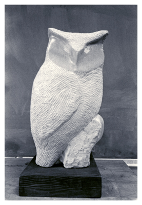 is part of artist Roberta Kelly's series of seven limestone sculptures that depict common Northwest animals, carved using subtle details and stylized forms.